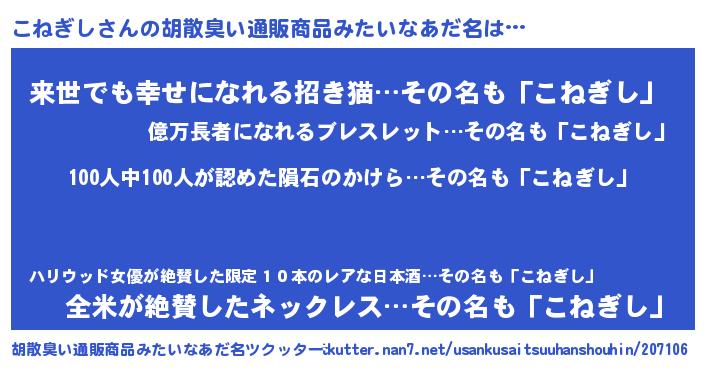 ヘコむあだ名 | 『こねぎし(遠い目)』『こねを』 |
