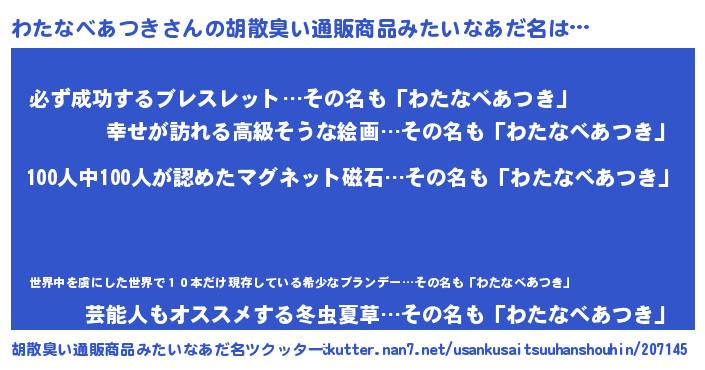 肩書あだ名 | 『わたなべあつきマネージャー』 |