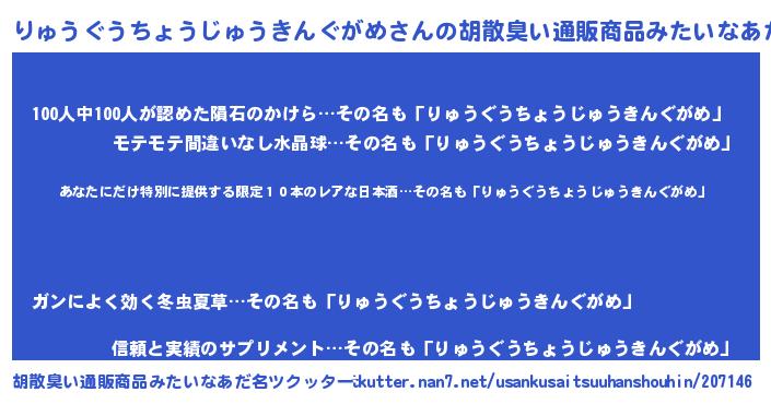 意味不明あだ名 | 『住所不定無職りゅうぐうちょうじゅうきんぐがめ(47歳)』 |