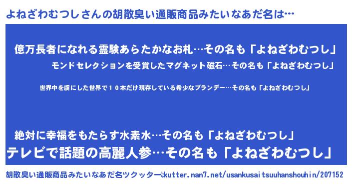 男性向けラノベタイトル風あだ名 | 『この素晴らしい世界によねざわむつしを!』 |