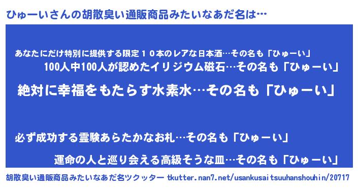 | 意味不明あだ名 | 『永久保存ひゅーい』 |