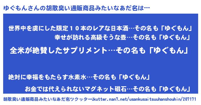 ヘコむあだ名 | 『ゆぐ太郎』『なまこ酢』 |