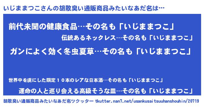 | ヒーロー風カッコイイあだ名 | 『ウルトラ戦士イジママツコ』 |