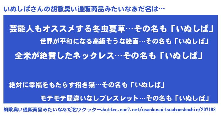 男性向けラノベタイトル風あだ名 | 『いぬしばに滅ぼされるだけの簡単なお仕事です』 |