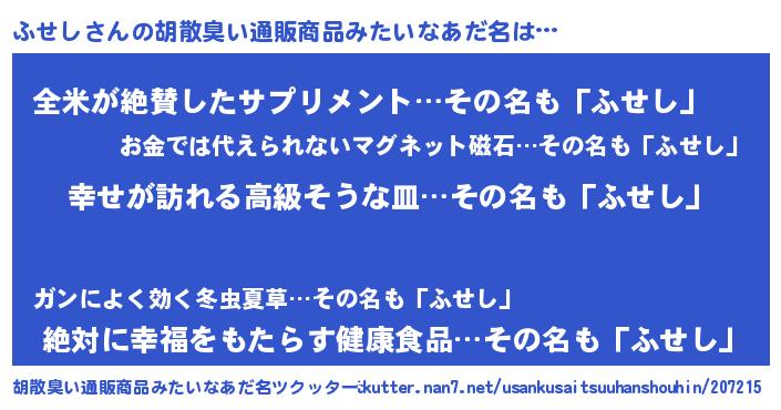 | ポケモン風あだ名 | 『フセゴンZ』『フセシダネ』 |