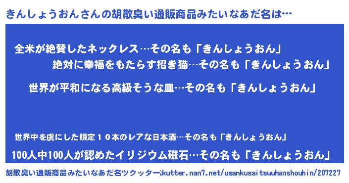 ヘコむあだ名 | 『豆乳』『きんっ子』『きんにー』 |