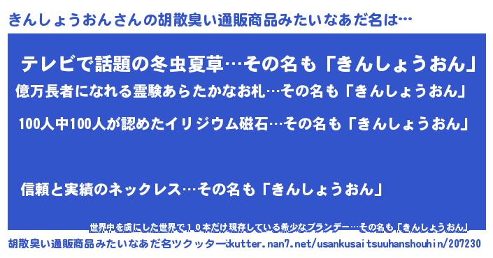 | ピコ太郎風あだ名 | 『キキ太郎』『キコ史郎』『キン五郎』 |