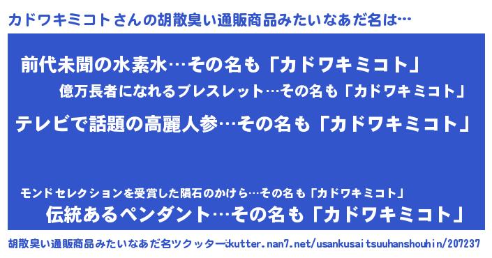 | 意味不明あだ名 | 『自称カドワキミコト』 |