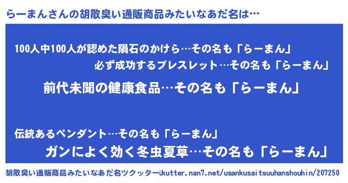 ヒーロー風カッコイイあだ名 | 『ネオラーマン』『愛の使者らーまん』 |