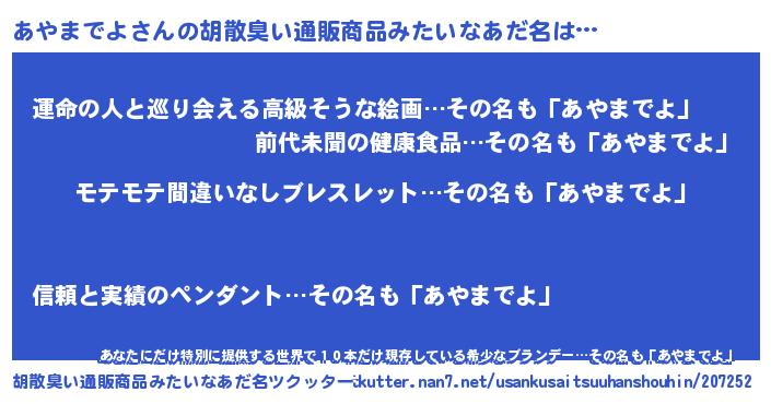 恥ずかしいあだ名 | 『プリティーあやまでよ』『あやっちょ』 |