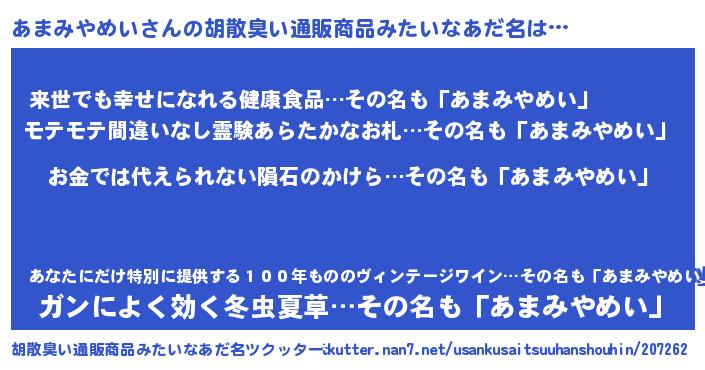 ヘコむあだ名 | 『あまみやめい(震え声)』『あまふぇ~』 |