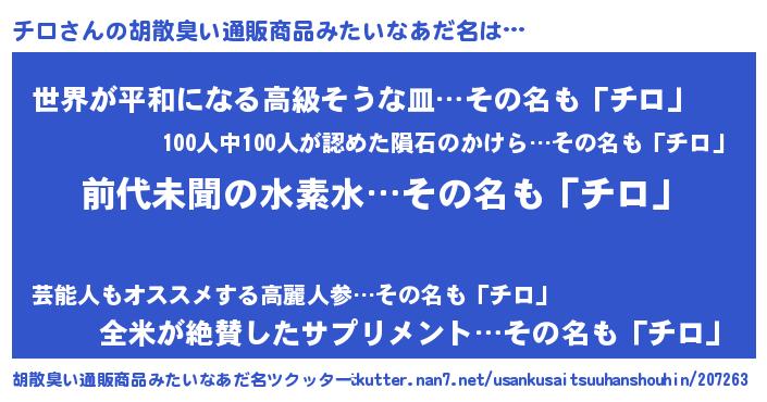 意味不明あだ名 | 『ニラ科チロ属』『永久保存チロ』 |