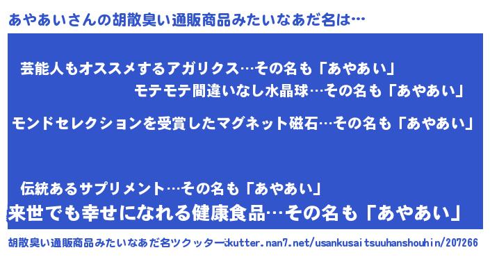 | ヘコむあだ名 | 『あやあい(小並感)』『あやもー』 |