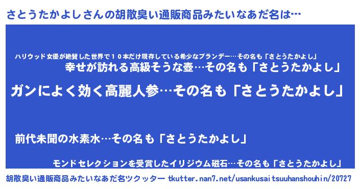 | 意味不明あだ名 | 『自称さとうたかよし』 |