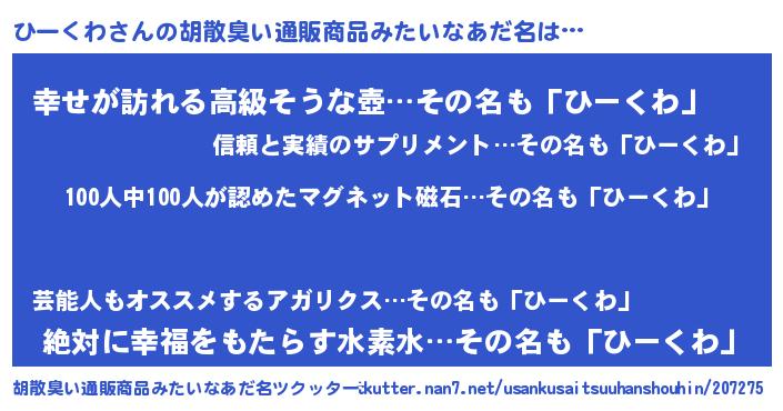 ポケモン風あだ名 | 『ヒックウザ』『ヒークダネ』 |