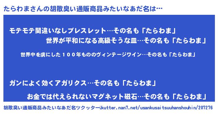 意味不明あだ名 | 『住所不定無職たらわま(7歳)』 |