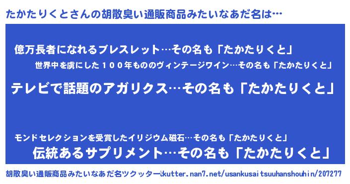 恥ずかしいあだ名 | 『タカタリクトデラックス』『たかっちょ』 |