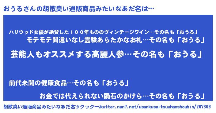 男性向けラノベタイトル風あだ名 | 『うちのおうるが世界を掌握している!』 |