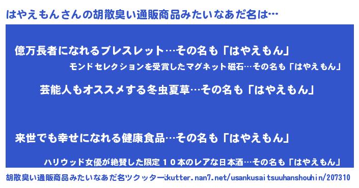 ヘコむあだ名 | 『はやもー』『はやえもん(小並感)』 |