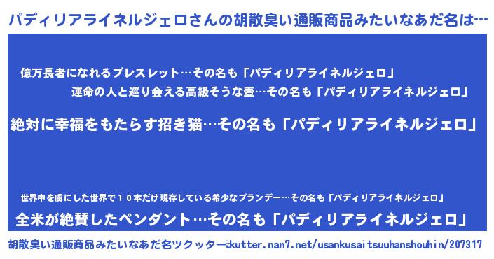 | ヘコむあだ名 | 『パディリアライネルジェロ(小並感)』 |
