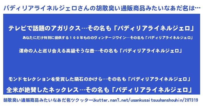 | ファンタジー風あだ名 | 『エターナルパディリアライネルジェロー』 |