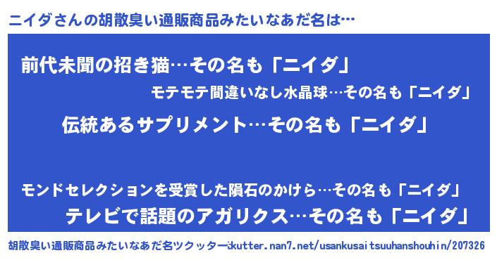 意味不明あだ名 | 『とにかく怪しいニイダ』『自称ニイダ』 |