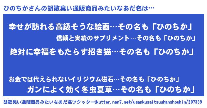 | 男性向けラノベタイトル風あだ名 | 『ひのちかという概念が存在しない退屈な世界 』 |