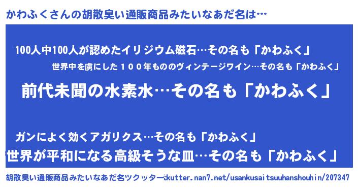 | ヒーロー風カッコイイあだ名 | 『ネオカワフク』『友情の使者かわふく』 |