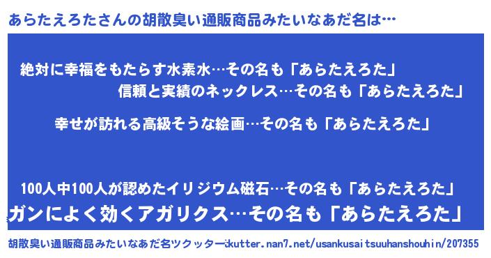 | 欧米人風あだ名 | 『あらたえろた・ステッグマイヤー』 |