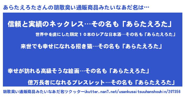 | 意味不明あだ名 | 『永久保存あらたえろた』 |