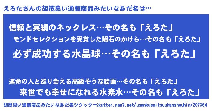 | ヘコむあだ名 | 『えろにゅー』『えろ太郎』 |