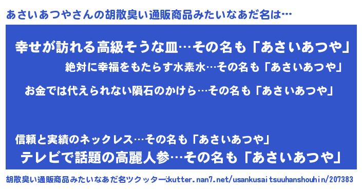 欧米人風あだ名 | 『アンジェラ・あさいあつや』 |