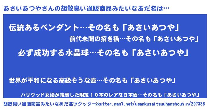 ヘコむあだ名 | 『あさにゅー』『あさ太郎』 |