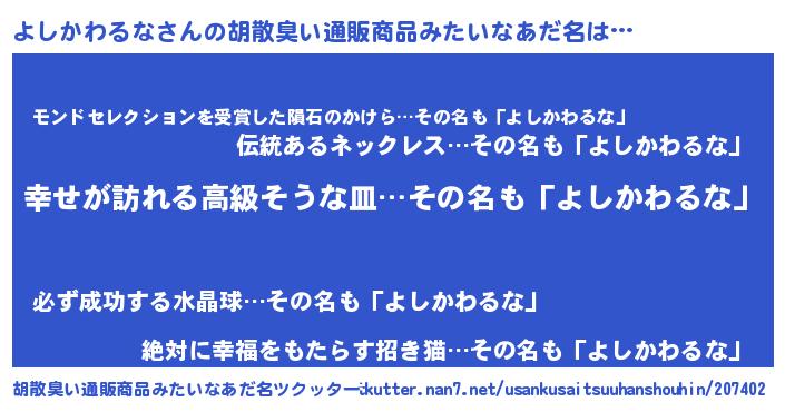 | 欧米人風あだ名 | 『よしかわるなクリステル』 |