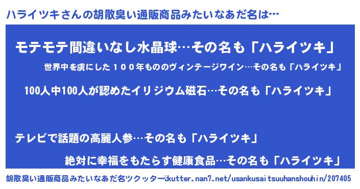 | 欧米人風あだ名 | 『ダニエルハライツキ』 |