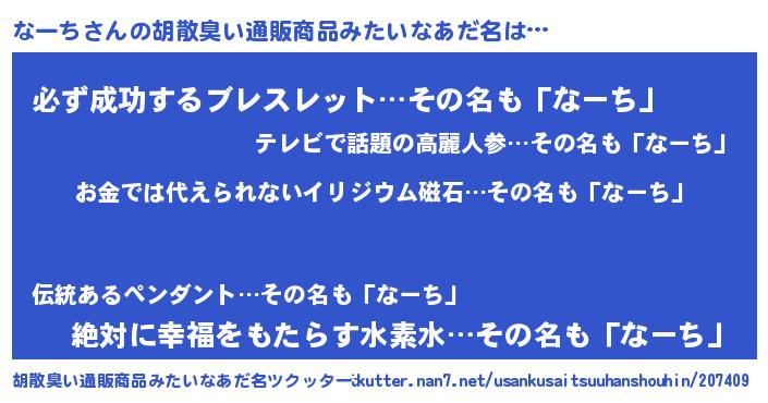 | ヘコむあだ名 | 『なーもー』『なーち(小並感)』 |