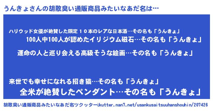 | 意味不明あだ名 | 『うんきょフォーエバー』 |