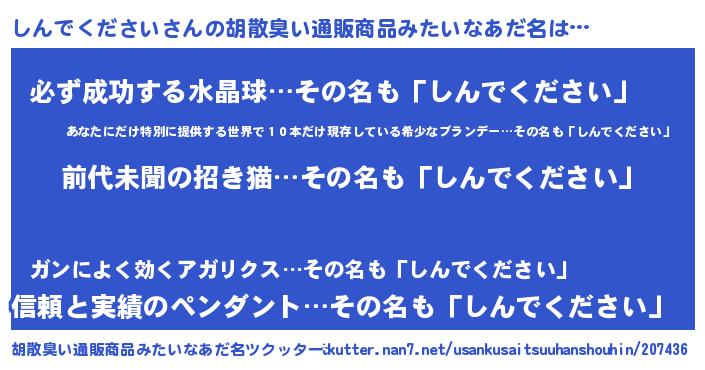 | ヘコむあだ名 | 『しんでください(笑)』『しんもー』 |