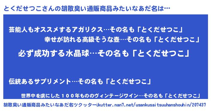 | ヒーロー風カッコイイあだ名 | 『スーパートクダセツコ』『仮面トクダー』 |