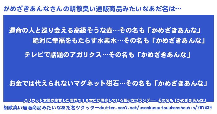 | ヘコむあだ名 | 『豆乳』『かめざきあんな(震え声)』 |