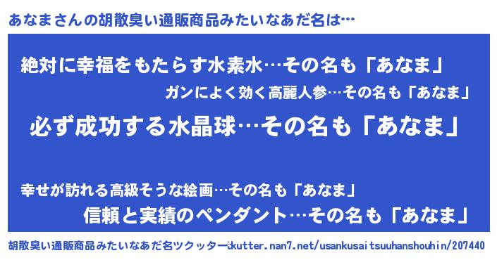 | ヘコむあだ名 | 『あなにゅー』『あなま(震え声)』 |