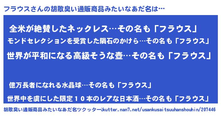 | ヒーロー風カッコイイあだ名 | 『ウルトラフラウスマン』『幻影騎士フラ』 |