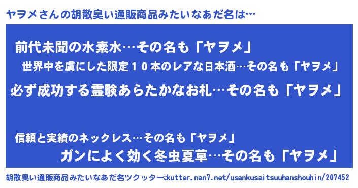 | 意味不明あだ名 | 『ペロリンヤヲメ』『永久保存ヤヲメ』 |