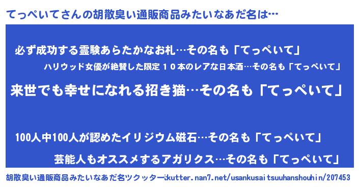 | 意味不明あだ名 | 『永久保存てっぺいて』『自称てっぺいて』 |