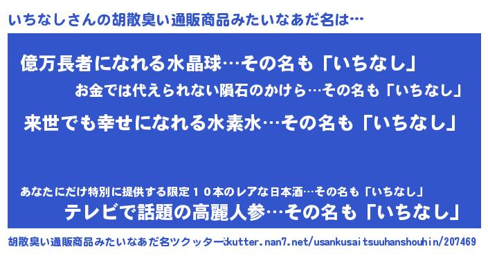 | ヘコむあだ名 | 『いちなし(遠い目)』『いちにゅー』 |