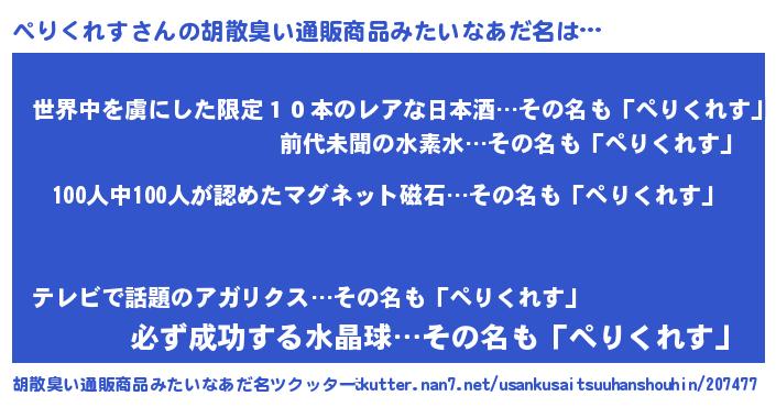 | ヘコむあだ名 | 『ぺりにー』『ぺりくれす(爆)』 |