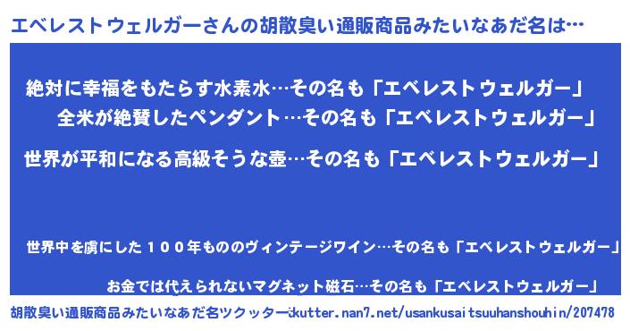 エベレストウェルガーさんの胡散臭い通販商品みたいなあだ名をツクッター!