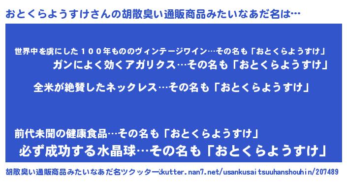 | 男性向けラノベタイトル風あだ名 | 『おとくらようすけの嫁は女の子じゃないと思った?』 |