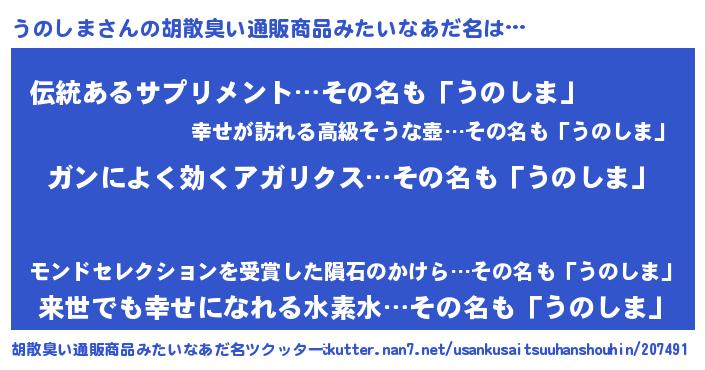 | 意味不明あだ名 | 『自称うのしま』『永久保存うのしま』 |