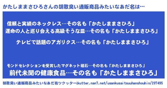 | ヘコむあだ名 | 『かたっぺ』『かたしままさひろ(笑)』 |